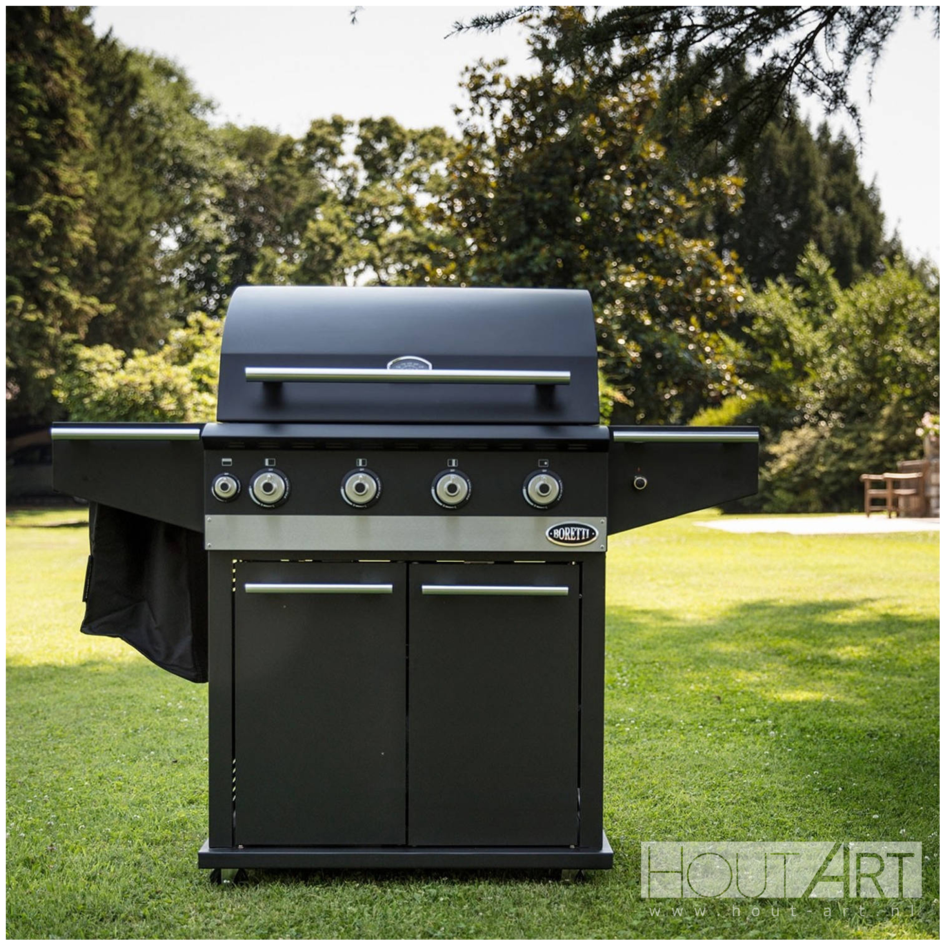 Voor iedere barbecue liefhebber dan niet kan en/of wil kiezen tussen houtskool en gas, heeft Boretti de Ibrido ontwikkeld. Bij de Ibrido wordt het plezier van het barbecueën op een echt houtskoolvuur en het gemak van bakken op gas gecombineerd. De volledig matzwarte outdoor kitchen is van alle gemakken voorzien. Met het grote grilloppervlak maak je in een handomdraai de lekkerste gerechten. Met twee zijtafels heb je voldoende ruimte om schalen, kommen en ingrediënten neer te zetten. Onder de linker zijtafel zit een ‘design’ afvalzak. De Ibrido heeft in totaal vijf branders: drie hoofdbranders, een infrarood bodem- en achterbrander en een gas zijbrander. Gebruik de gasbranders om de bakplaten en grillroosters om temperatuur te brengen. Gebruik kolen om de ‘echte’ houtskoolsmaak aan uw gerechten toe te voegen!