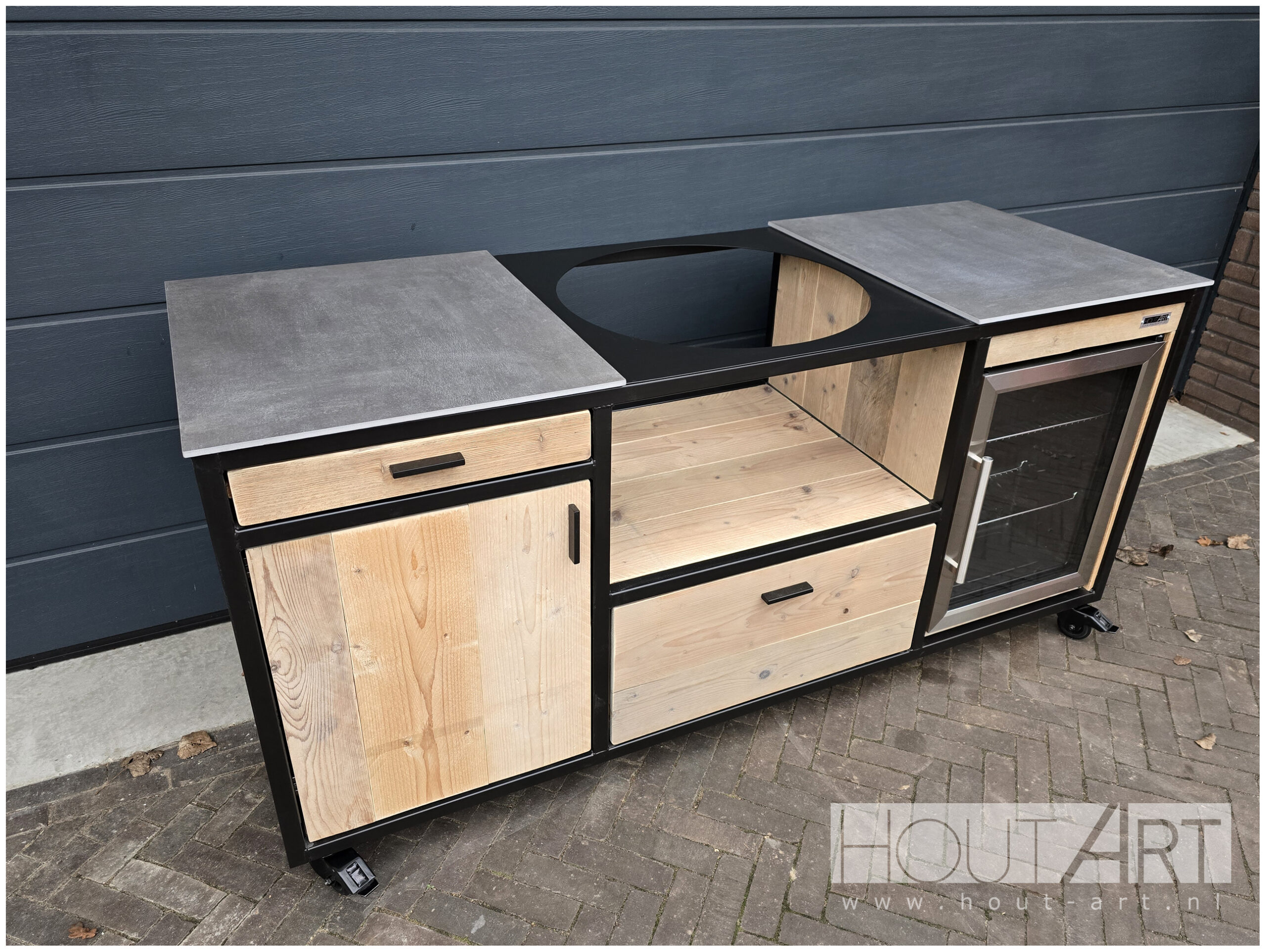 Buitenkeuken Dubbel FRIDGE stalen frame met lade voor Kamado / Egg Medium / Large