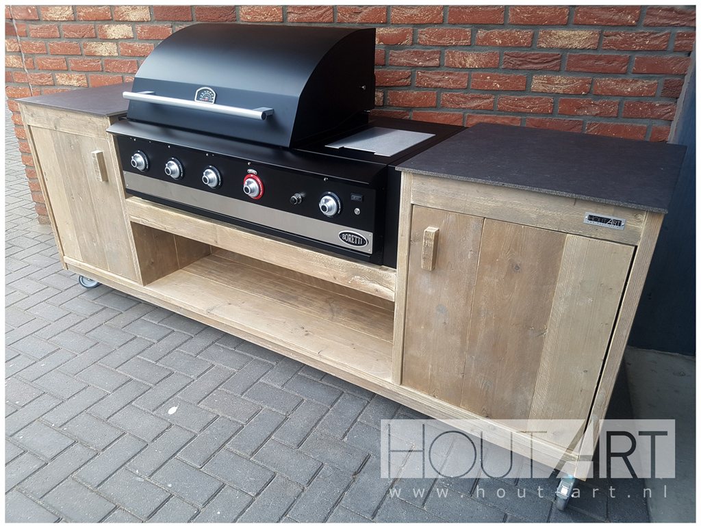 Een luxe, steigerhouten buitenkeuken, bedoeld voor de Boretti Ibrido of Ligorio Top.