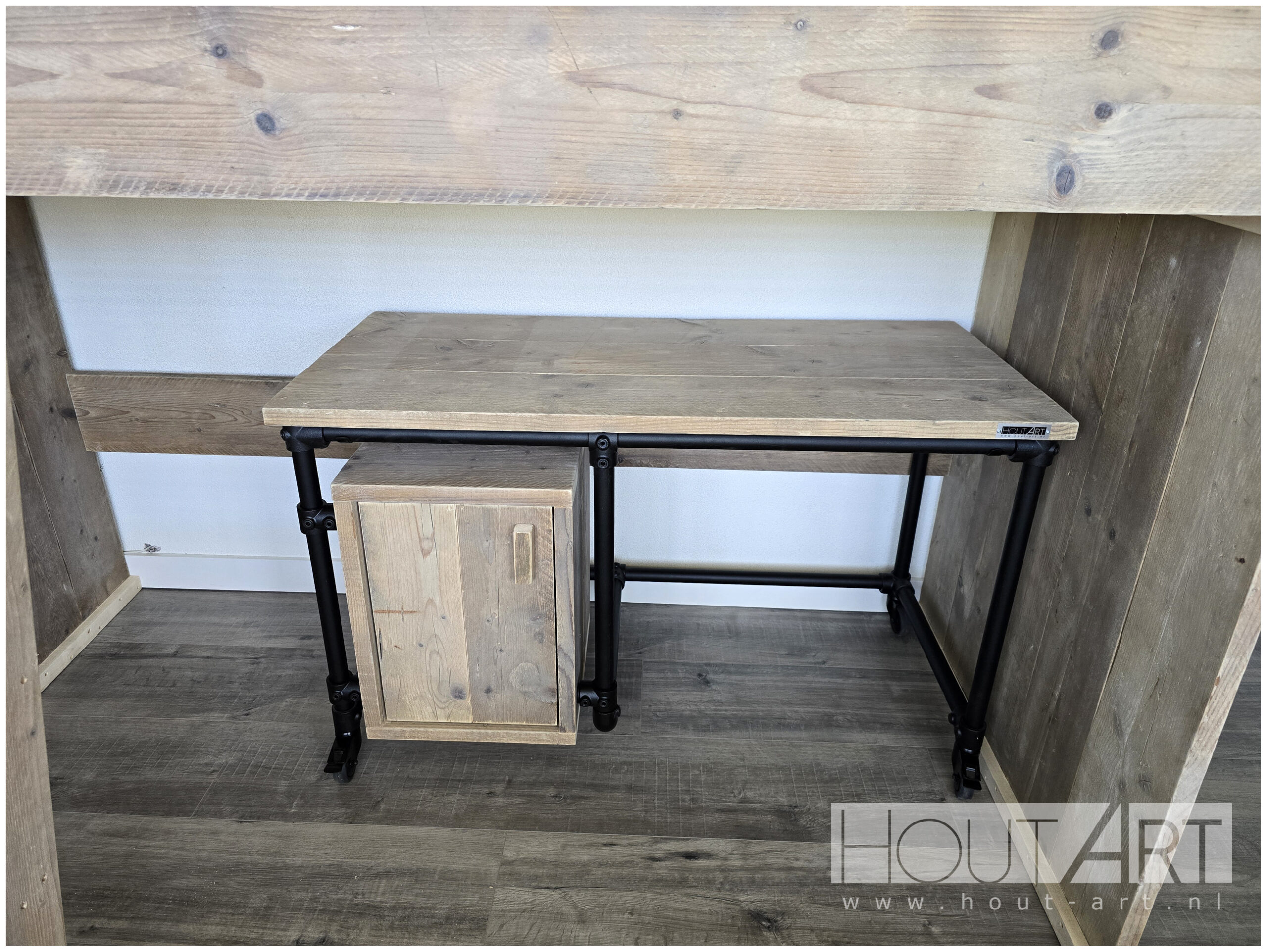 Deze hoogslaper is helemaal naar eigen wens samen te stellen, kies daarbij de afmetingen en de behandeling van het hout. Wij maken dit meubel voor je op maat in onze eigen werkplaats. Wil je graag meer opbergruimte creëren onder of naast deze hoogslaper? Wij maken ook nacht-/rolkastjes die passen bij de uitstraling van dit bed. Of een bijpassende kledingkast bijbestellen behoord ook tot de mogelijkheden.