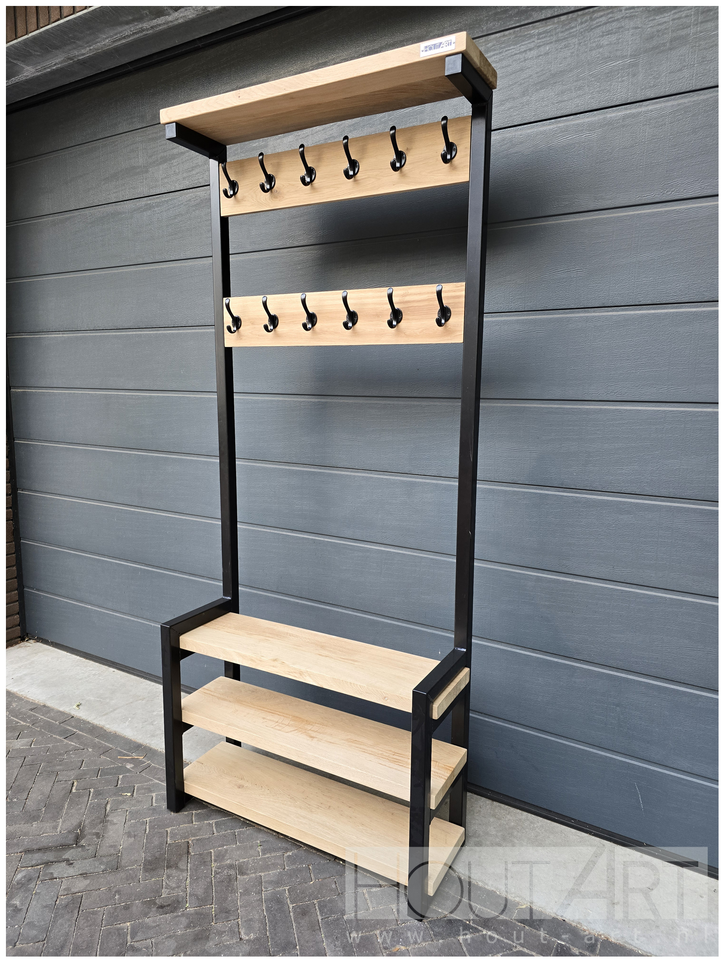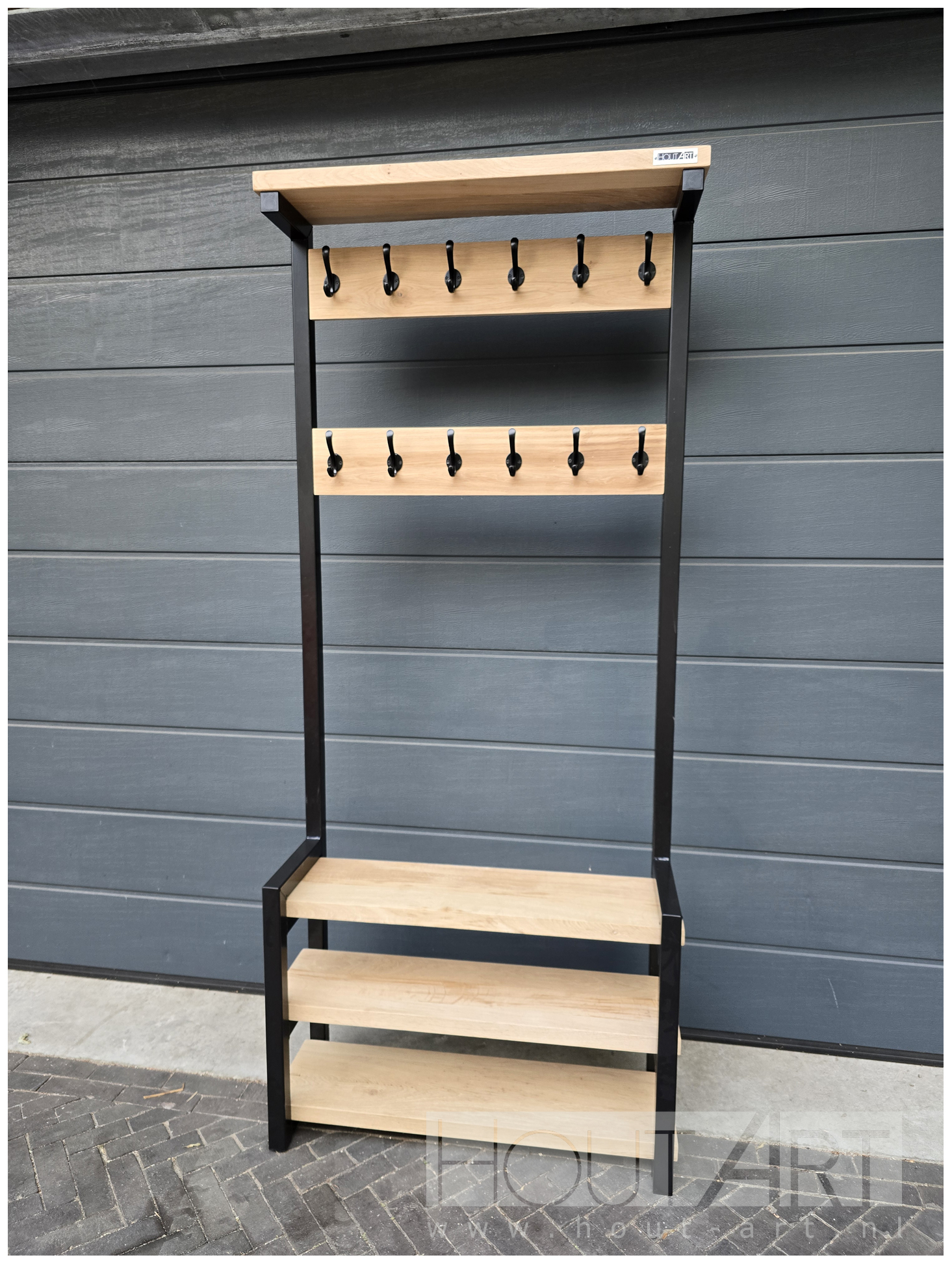 Kapstok stalen frame met schoenenrek in (oud) eiken