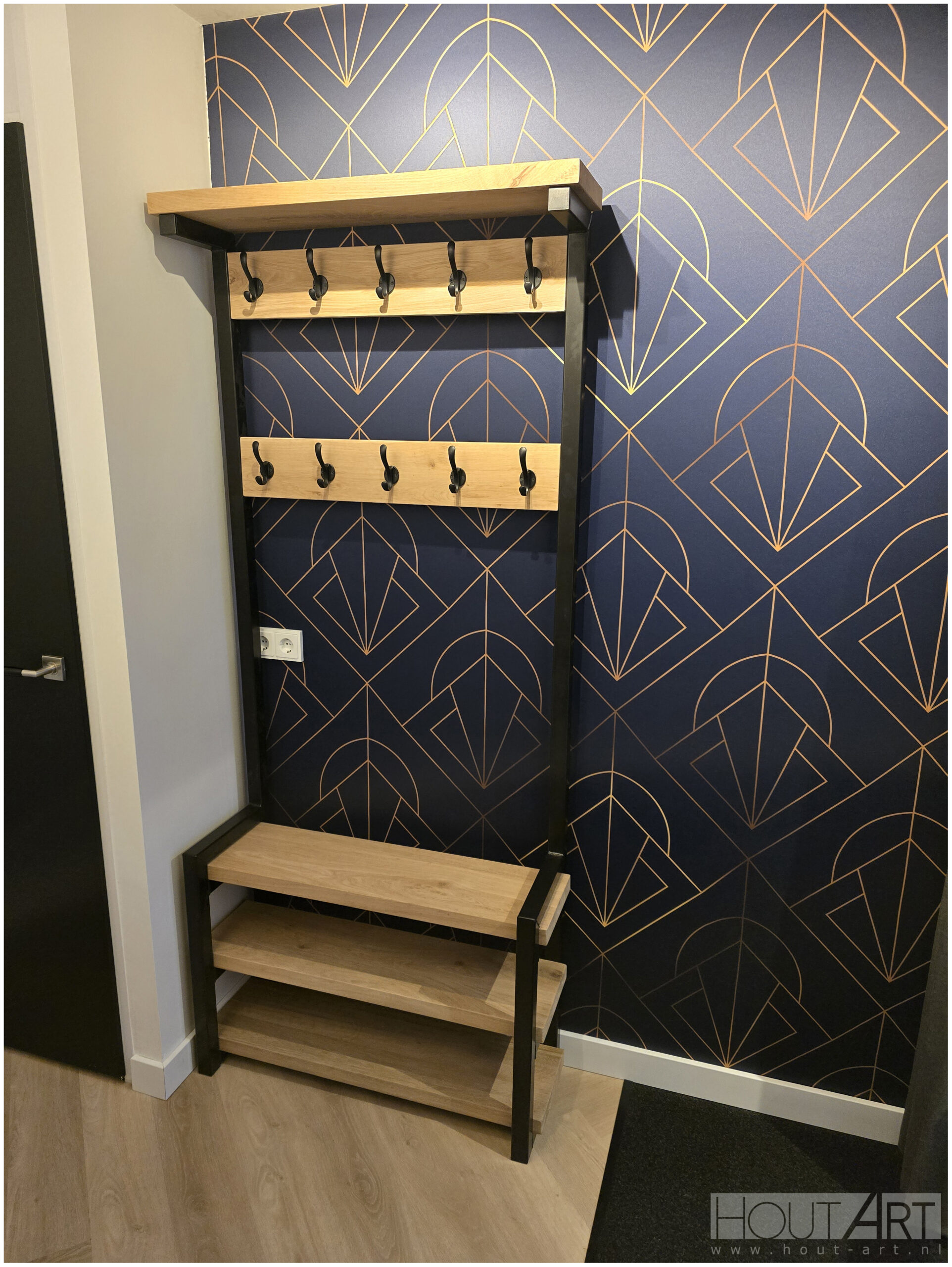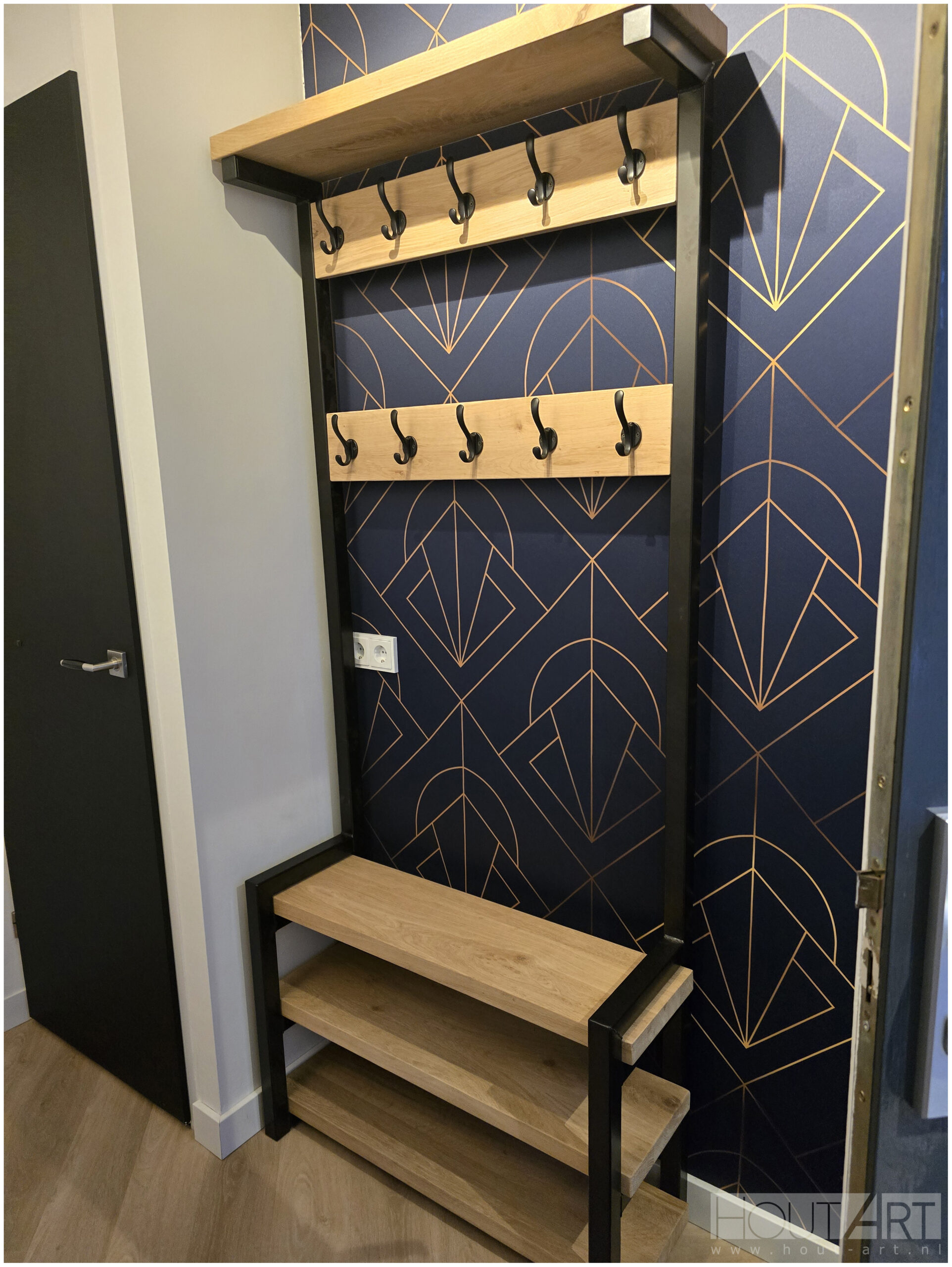 Kapstok stalen frame met schoenenrek in (oud) eiken