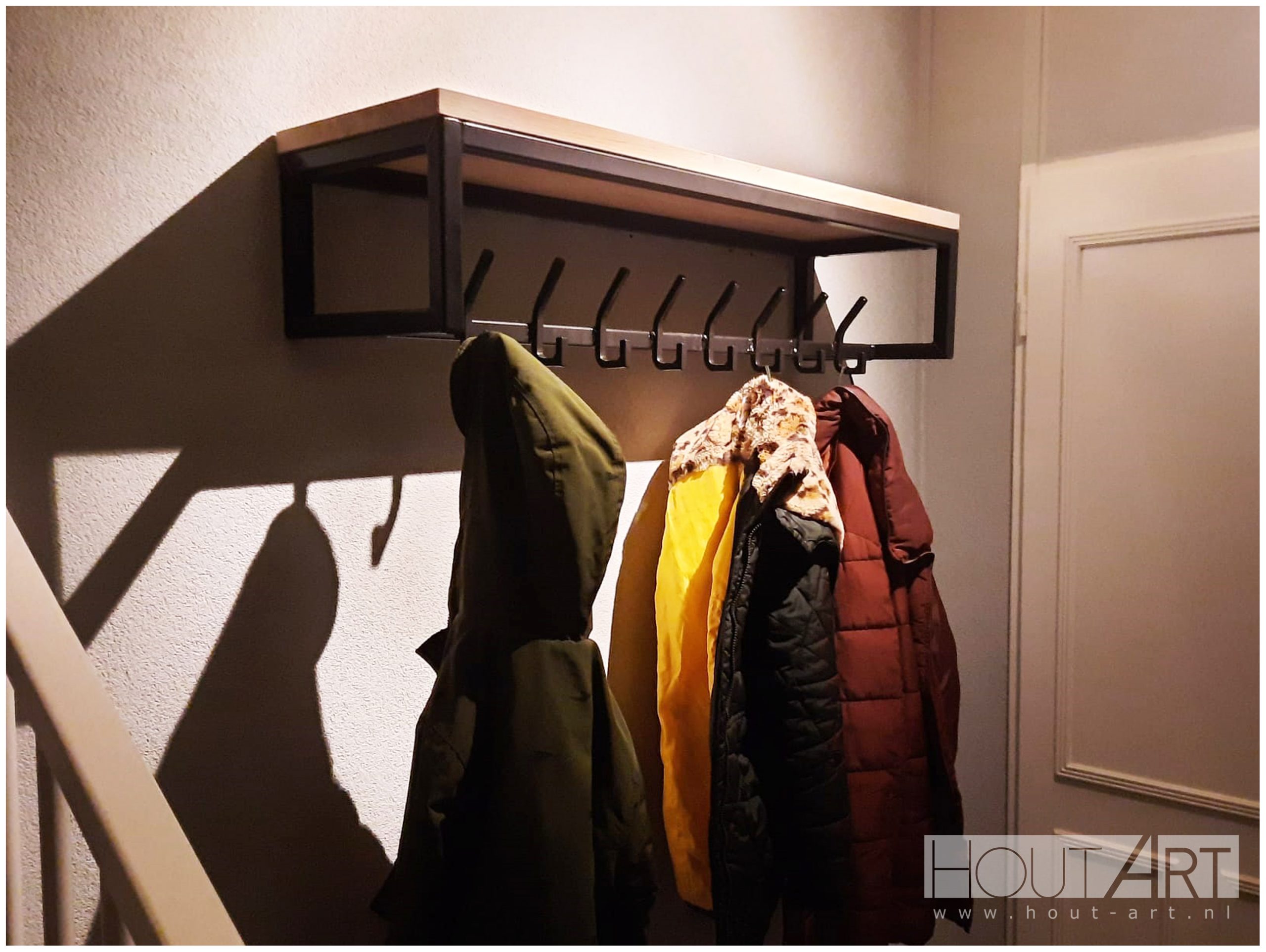 Een industriële kapstok van staal in koker 25x25mm of kies 30x30mm voor een robuuster geheel.