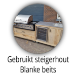 Een blanke beits bij nieuw steigerhout geeft zo goed als geen kleurverschil op het hout. Het meubel/hout blijft hierdoor heel licht gelig bruin van kleur.