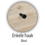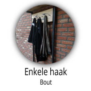 Bij deze kapstok is het nu ook mogelijk om ook de kapstok haken te kiezen. Bekijk hieronder het type haak. Voor de meest industriële look kies je voor de bouthaken, maar ook mogelijk met een chique zwarte slanke, robuuste en dubbele haak.