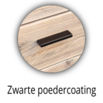 Onze zwarte steigerbuizen zijn behandeld met een mat zwarte poedercoating in RAL9005. Het geeft je meubel een luxe, maar ook industriële uitstraling.
