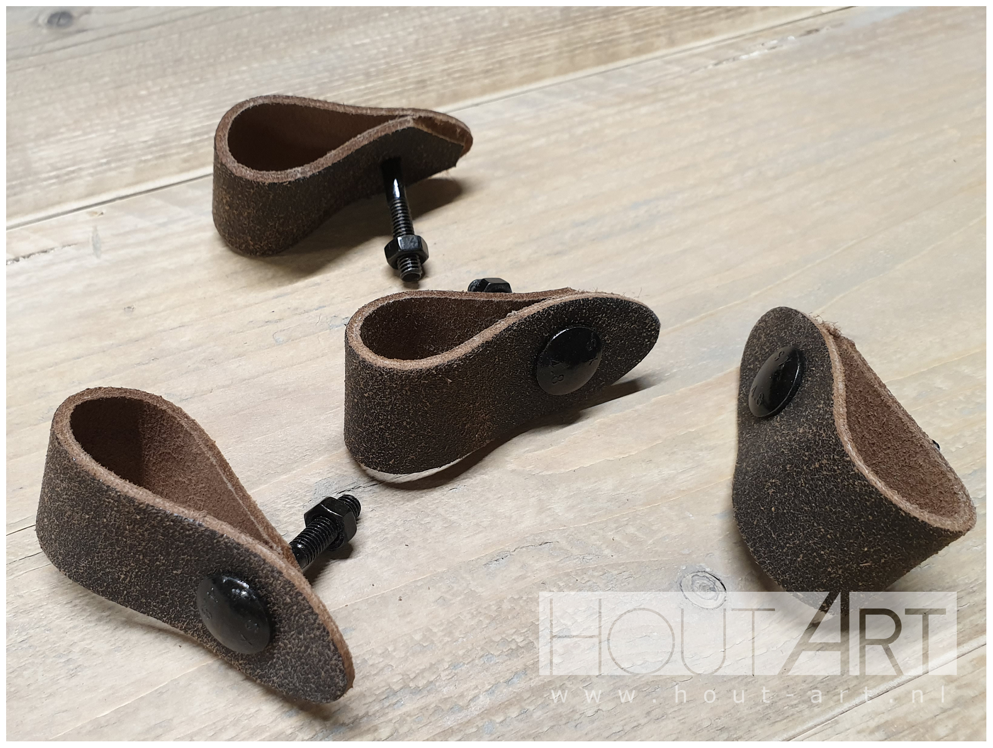 In diverse kleuren, vele kleuren uit voorraad leverbaar. Leuk om zelf je meubels op te pimpen met deze leren handgreep.