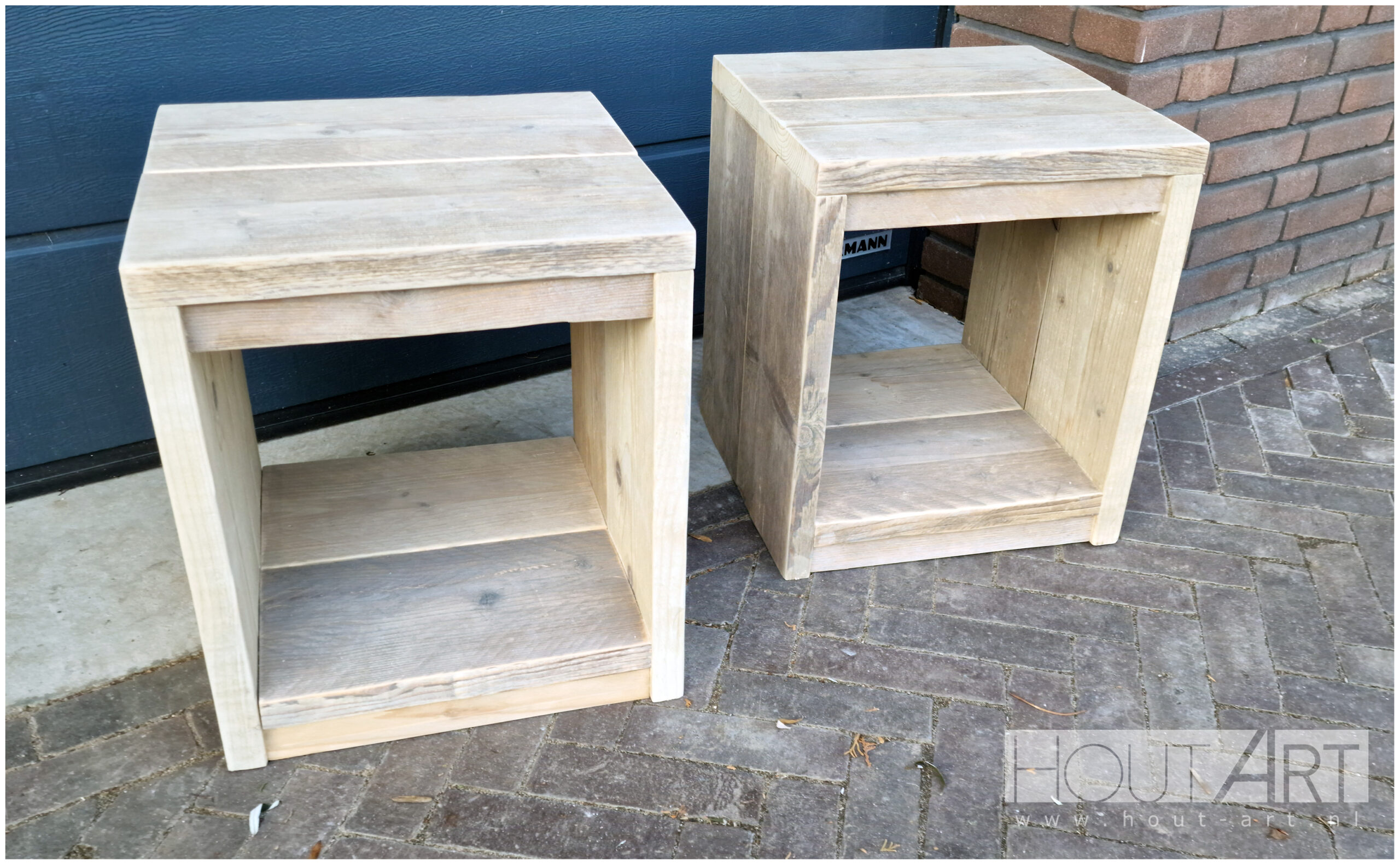 Dit nachtkastje is een mooie toevoeging aan je slaapkamer. Wordt gemaakt met een open vak, open kubusvorm in steigerhout, naar keuze in nieuw of gebruikt hout, met gebruikt steigerhout krijgt je meubel een robuustere uitstraling.