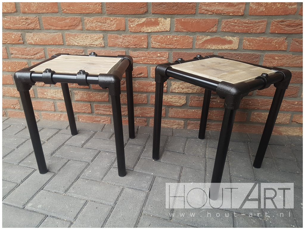 Nachtkastje zwarte steigerbuis bsc steigerhout
