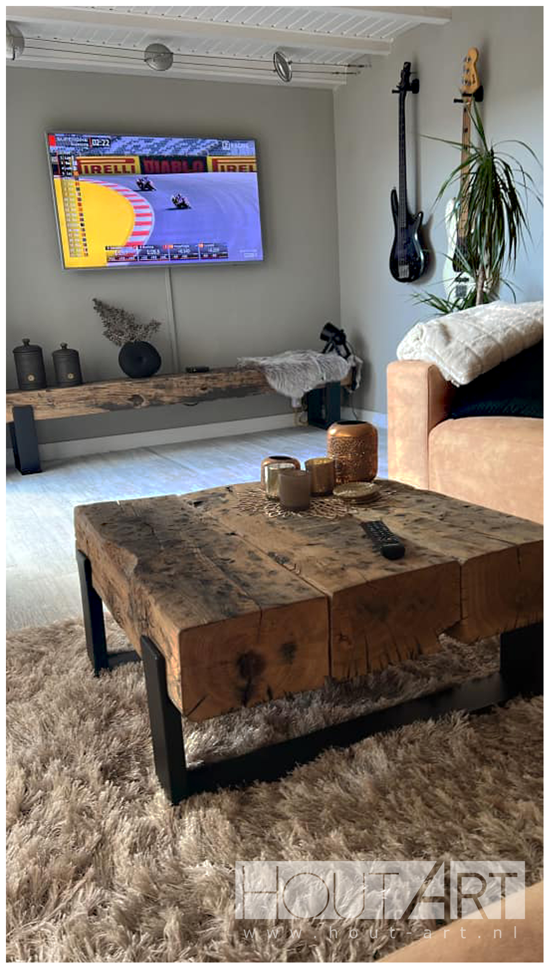 Het meubel is in verschillende afmetingen en opties mogelijk, wij maken deze salontafel op maat in onze werkplaats. Combineer dit meubel met onze bijpassende meubels van spoorbielzen. Zoals tv-meubels en sidetables.
