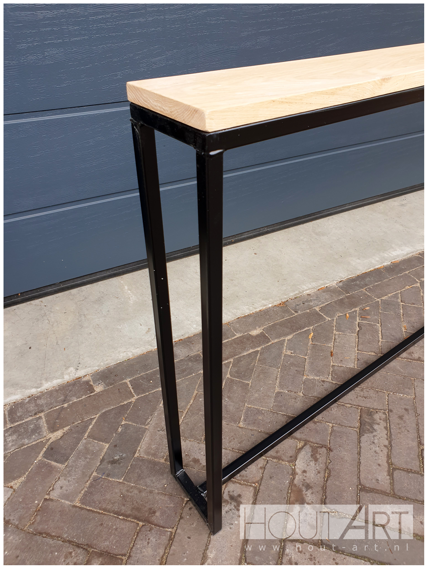 Plaats de sidetable tegen een lege muur of achter de bank. Het is een perfecte plek voor decoratie, zoals planten, vazen, kaarsen en fotolijstjes. Het mooie van deze sidetable is dat je het volledig kunt aanpassen aan je eigen wensen. Je kunt kiezen uit verschillende houtbehandelingen en afmetingen, zodat het perfect past in jouw interieur. Combineer deze sidetable met onze andere meubels uit ons uitgebreide assortiment, zoals kasten, tafels en wandplanken.