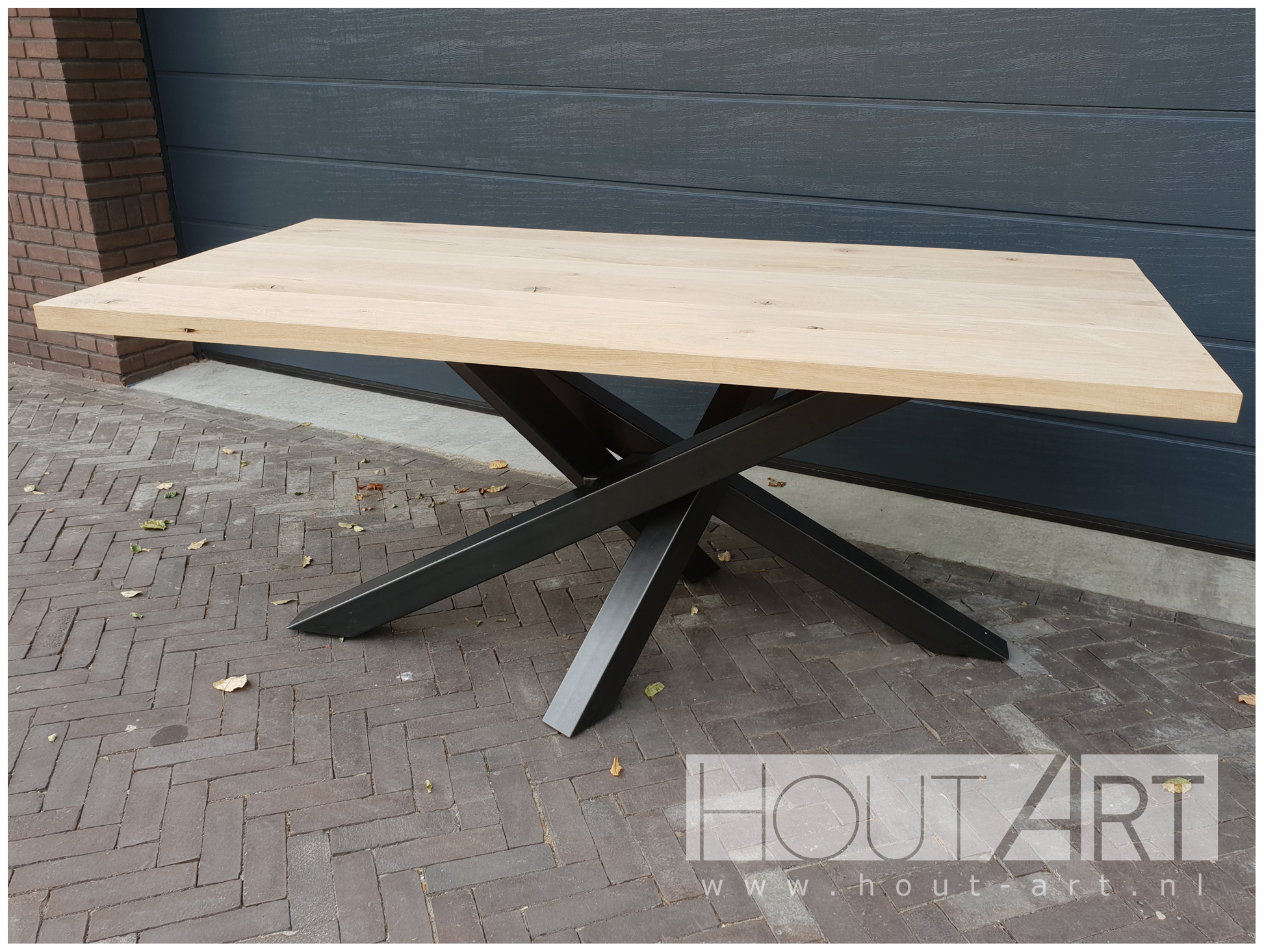 Tafel Twister poot staal massief eiken