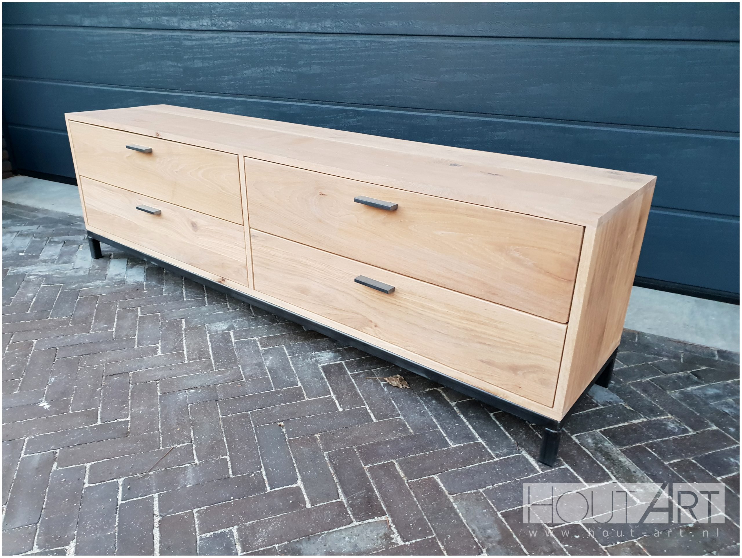 Tv-Meubel stalen onderfame met lades eiken
