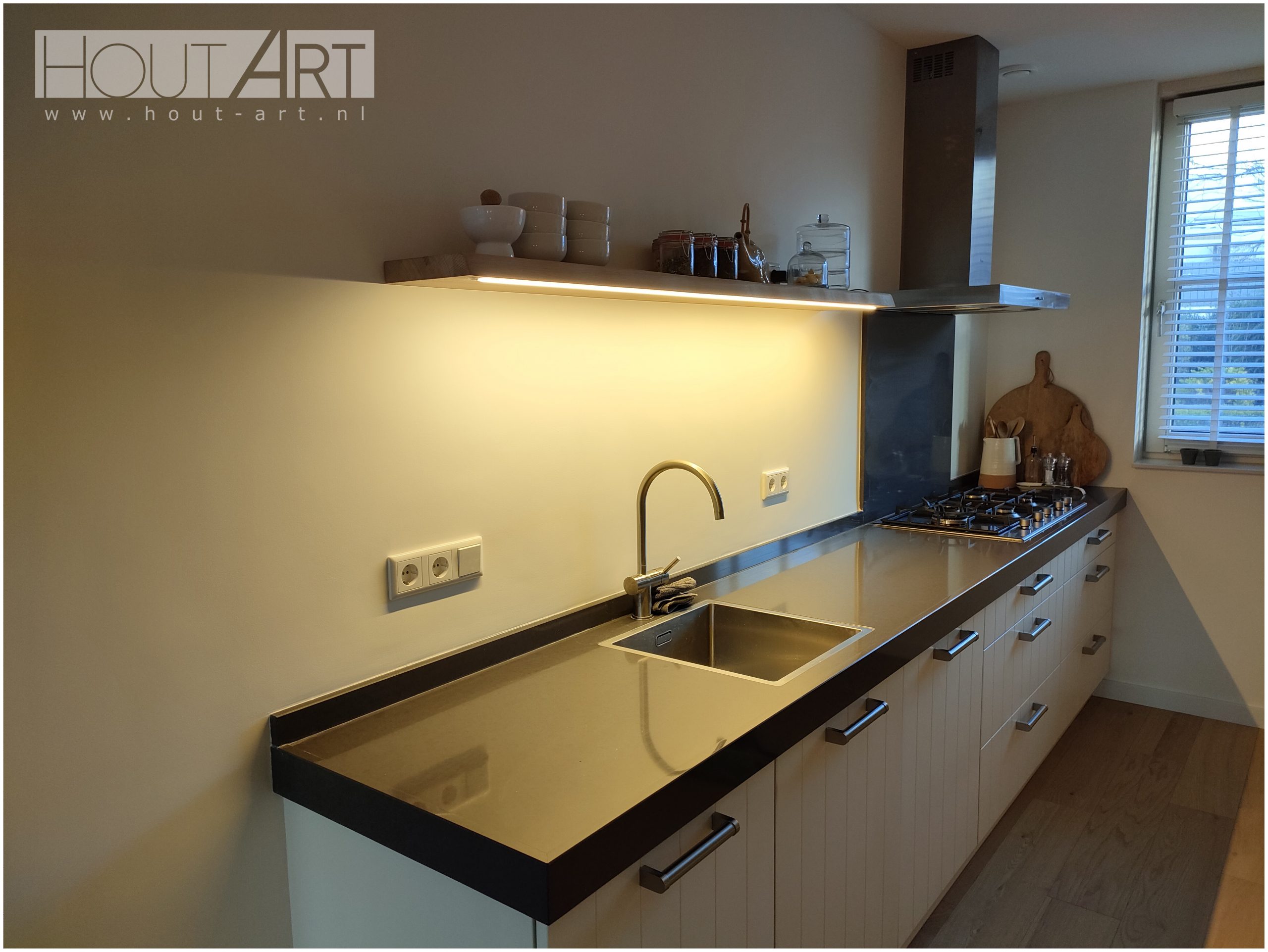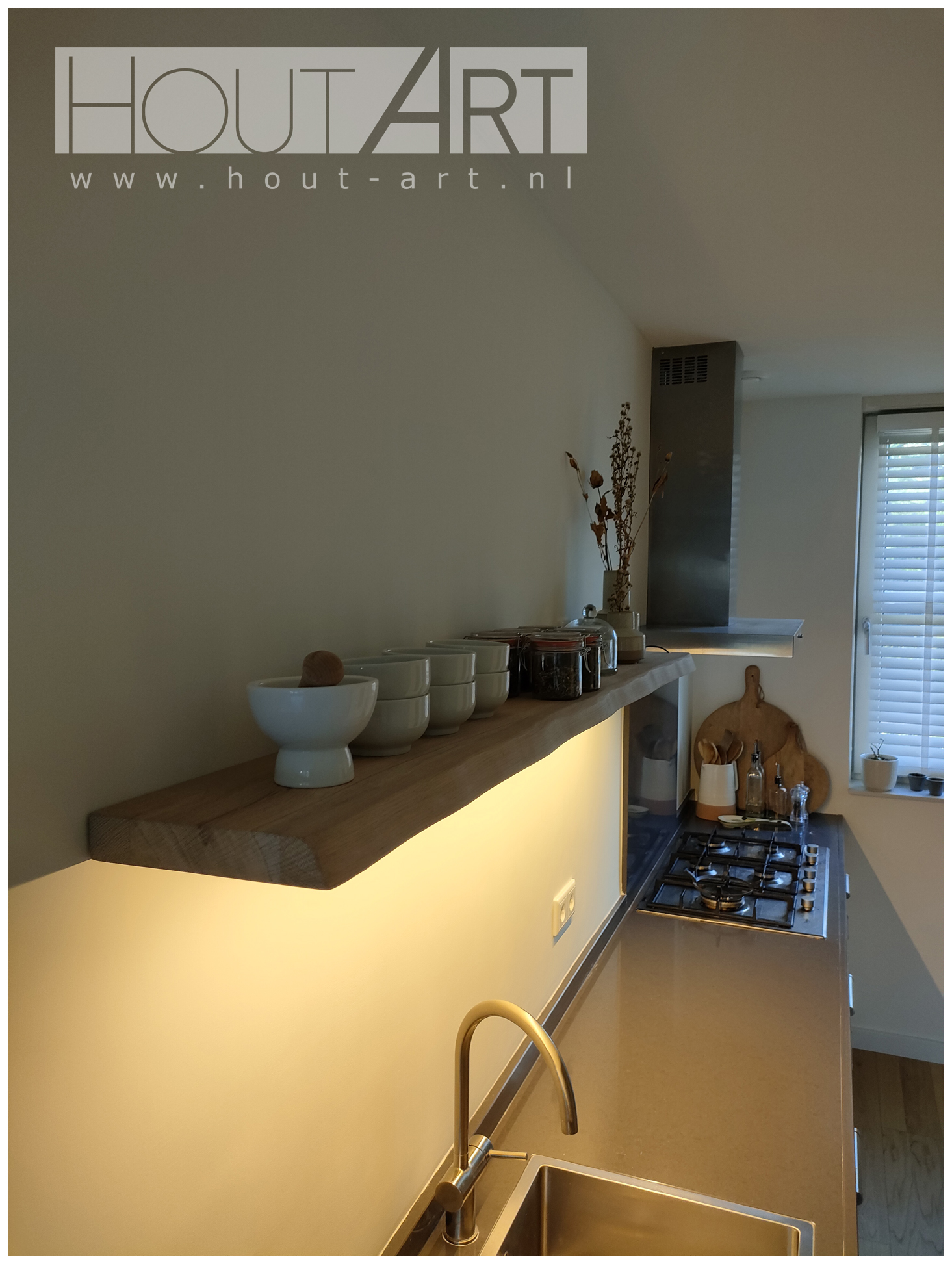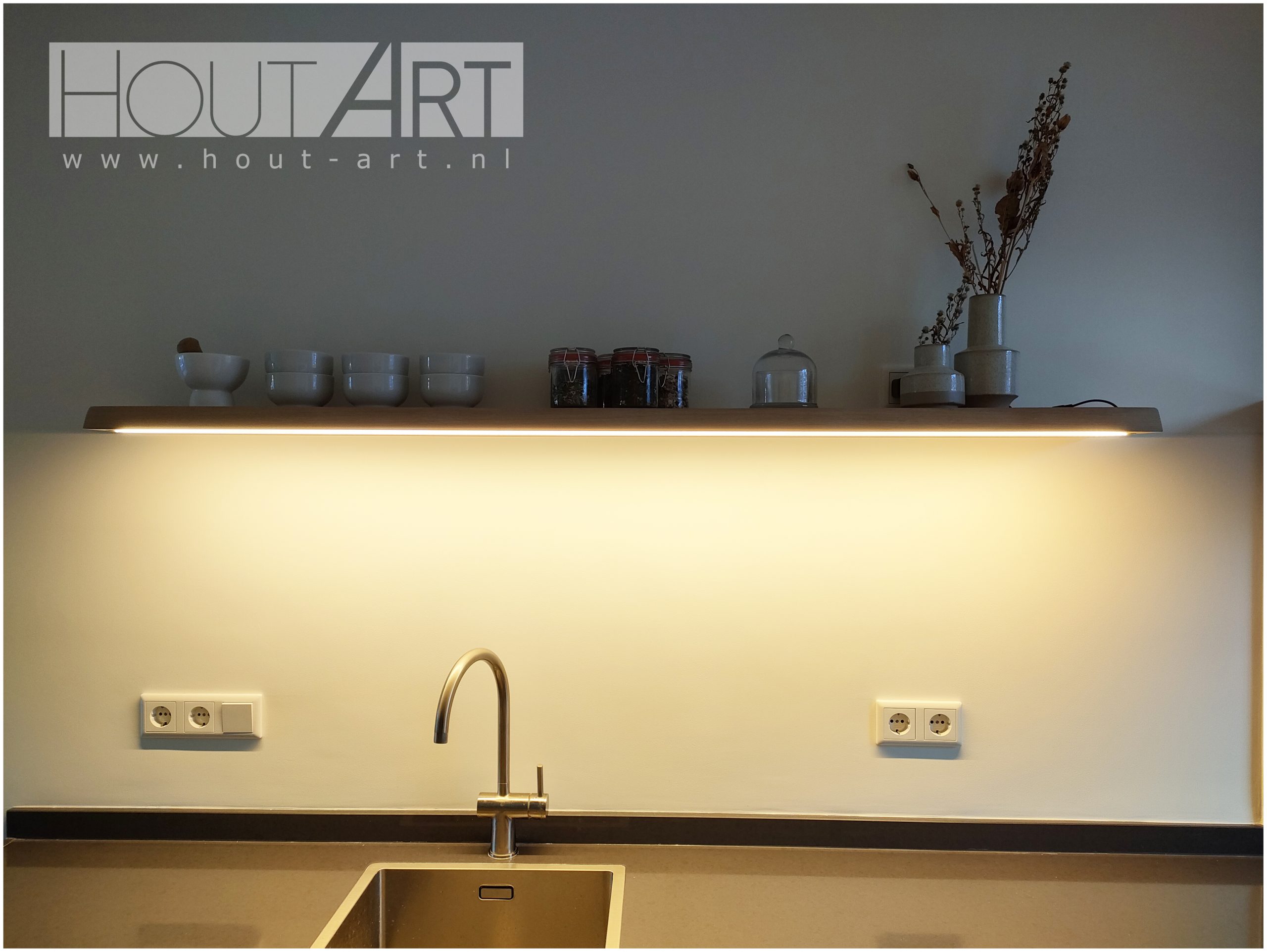 Een mooie wandplank van eikenhout, inclusief in gefreesde ledstrip. Je kunt kiezen uit twee verschillende type ledstrips, wit- of kleurtinten. Deze wandplank is mogelijk in verschillende opties en afmetingen, wij maken deze plank voor je op maat in onze werkplaats.