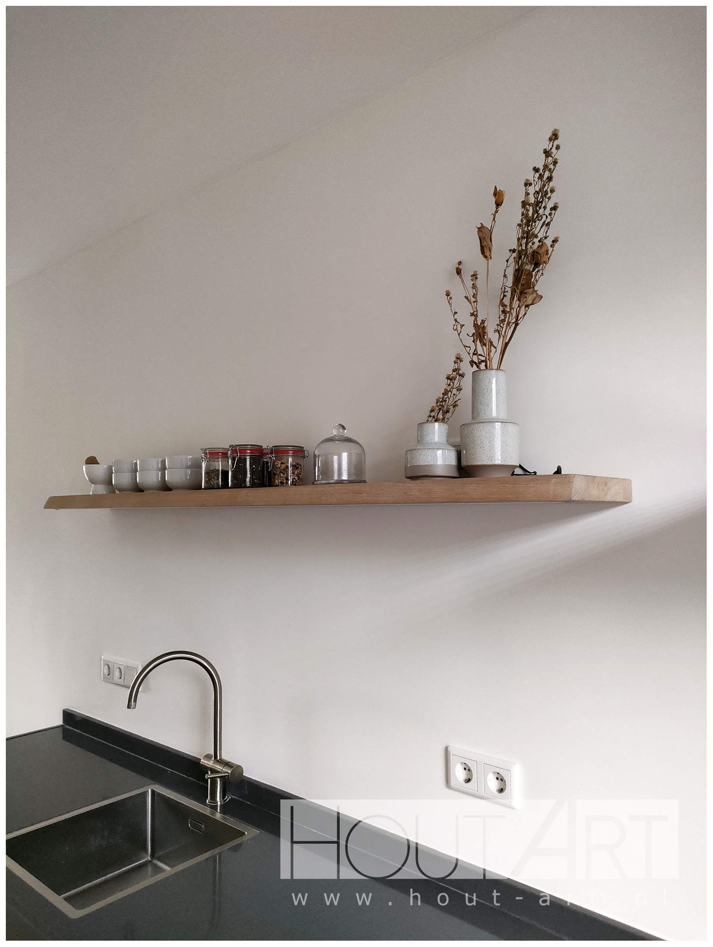 Het is een fijne wandplank die perfect te gebruiken is in de keuken, voor het opbergen van keukengerei of potten. Maar ook fijn voor in de gang, woonkamer of boven je bureau. Het hout is eventueel nog te behandelen met een skylt lak of Rubio olie om de kleur nog beter tot zijn recht te laten komen en de plank tevens te beschermen. Kortom, een luxe wandplank die een mooie toevoeging is aan je interieur.